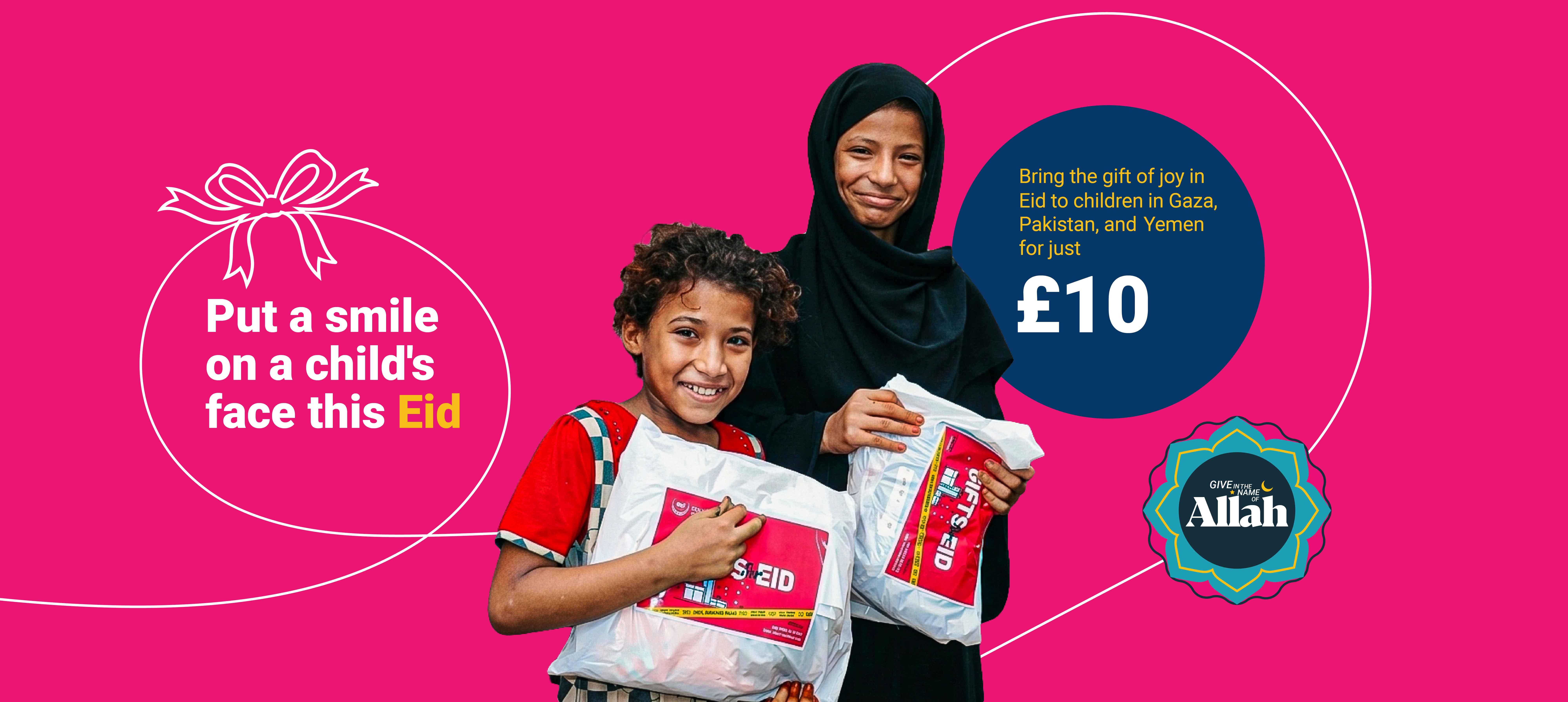 Your small donation can put a smile on a child's face this Eid from only £10! Donate a gift pack to a child this Eid.