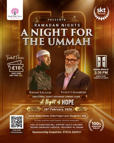 This event is proudly hosted in support of SKT Welfare, an organisation with a 100% donation policy, ensuring every penny of your donation reaches those in need. All donations collected on the night are fully Zakat applicable.
